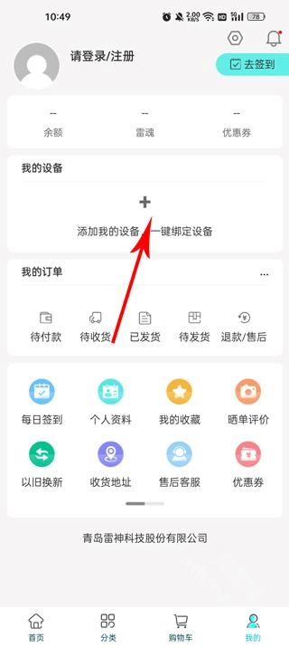 在“我的页面”里找到“我的设备”选项并点击,接着添加你的雷神设备,然后依据软件给出的提示步骤完成整个添加流程。