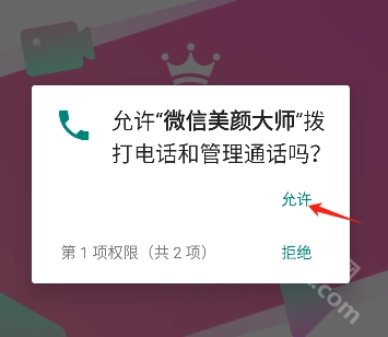 当弹出“允许微信美颜大师拨打电话和管理通话”的权限请求时,点击“允许”按钮。