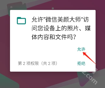 再点击允许微信美颜大师访问设备上的照片、媒体内容和文件