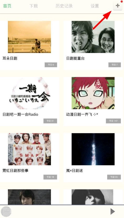 打开日剧tv后,我们既可以选择平台当前推送的热门日剧广播,也能点击右上角的“+”按钮进入发现页面,查找更多相关资源。