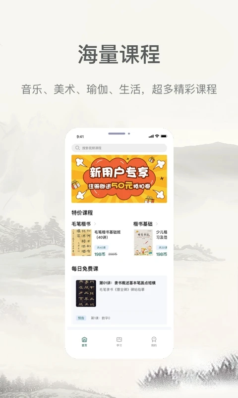 专业教学团队:这款应用配备了专业的教学团队,能为用户提供高质量的教学服务。其书法课程由知名专家进行指导,并且采用了生动有趣的教学形式,有助于提升学生在练习和创作书法时的兴趣。