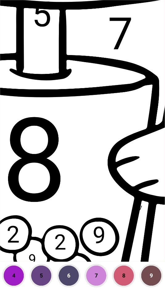 部分区域已填好颜色,显示效果就是这样;接着点击放大,再按照不同部位的数字提示完成后续填色。