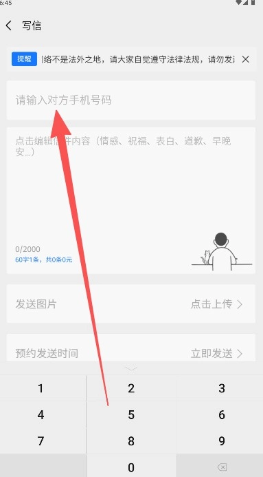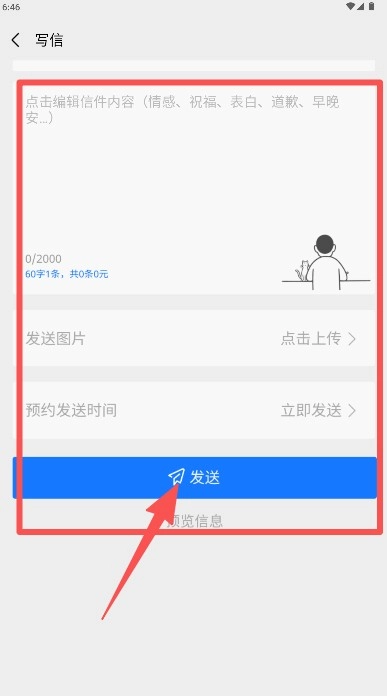 编辑信件内容支持上传图片点击“发送”完成操作。