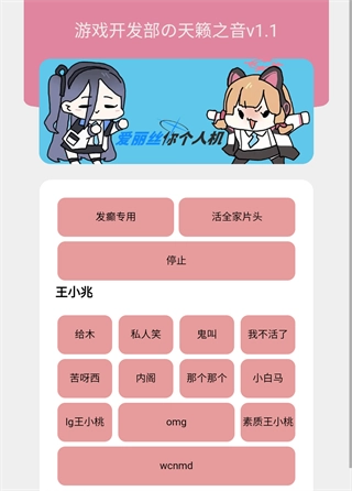 游戏开发部是一款超有趣的游戏语音变声工具。它收录了网上流行的各类语音包素材,用户能通过这款软件挑选心仪的语音包在游戏里使用,也可以用里面的语音包来和朋友开玩笑、搞点小恶作剧!