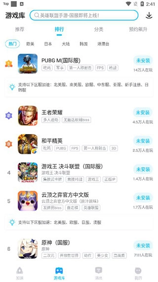 另外,在游戏库中,能看到各类热门游戏,其中不乏一些目前还未在国内上线的海外服务器游戏。