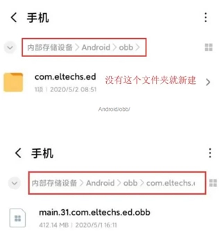 下面是将百度网盘中以“obb”结尾的文件移至download文件夹,然后复制粘贴到红色框选中的安装路径中。