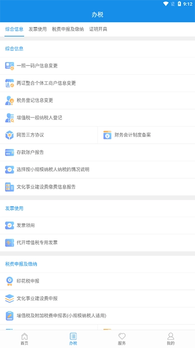 税收管理、发票在线认证、发票查验、网购发票签收以及小规模纳税人一键零申报
