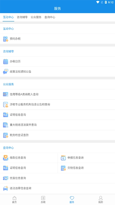 办税日历、办税地图、纳税信用查询、一般纳税人查询以及出口退税率查询。