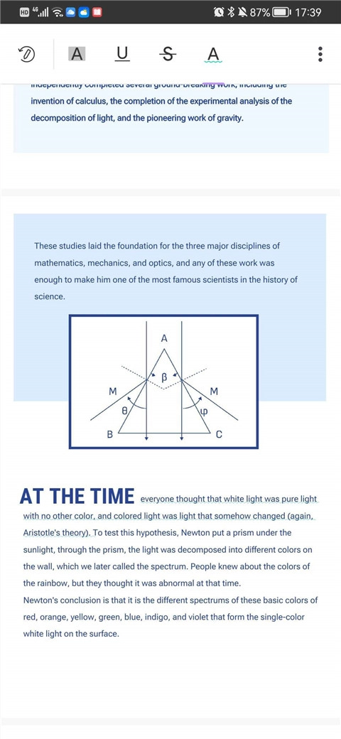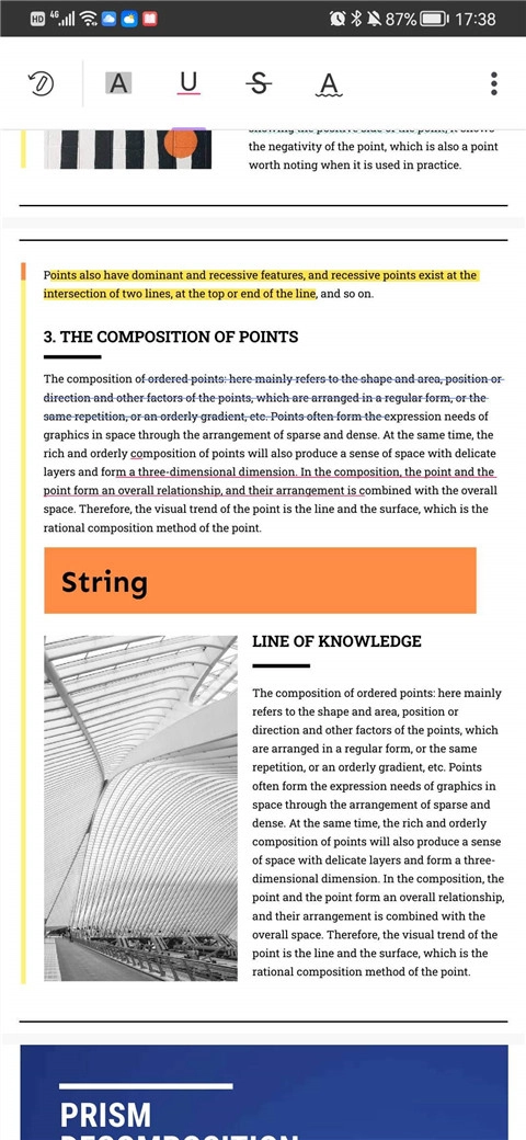 - 可对PDF文档中的文本进行选中操作,进而实现复制、分享、翻译、搜索等功能;
