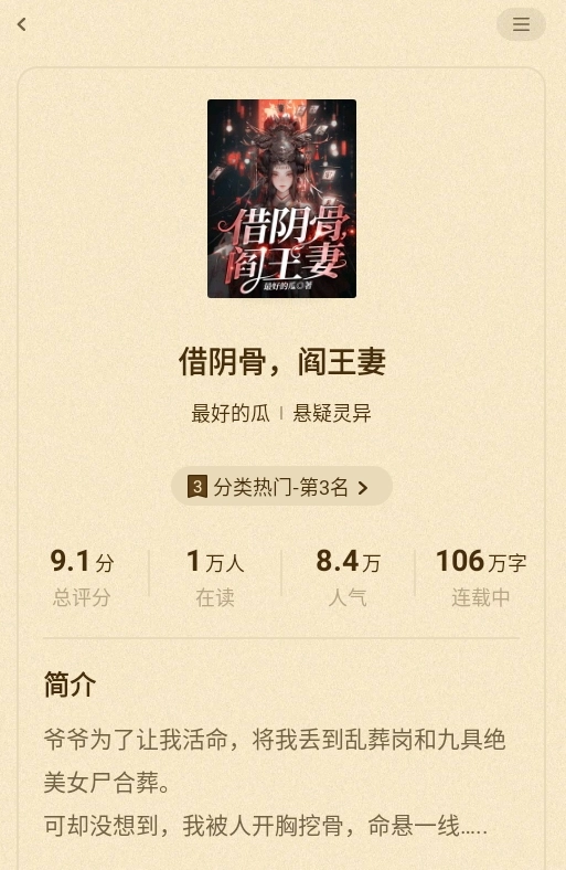 找到想看的小说资源以后,点开进入详情页。