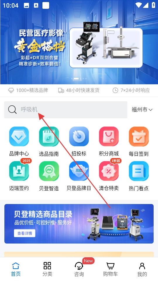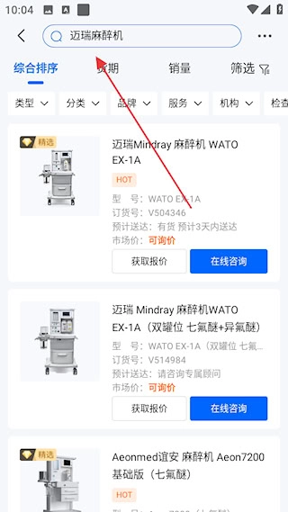 进入平台首页后,在页面顶部的搜索框中输入目标医疗设备的关键词,像特定品牌或产品类型这类词汇都可以,然后点击搜索按钮,就能进入产品列表页面了。