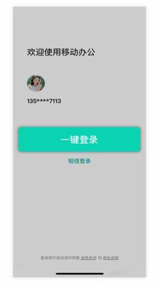 移动办公客户端支持本机号码一键登录和短信登录两种方式,且登录操作同步完成注册流程。
