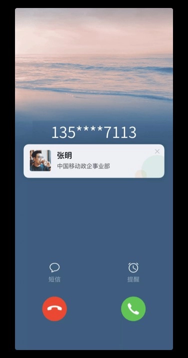 请注意:若要确保来电名片能正常显示,需保证移动办公的后台进程不被系统清理。