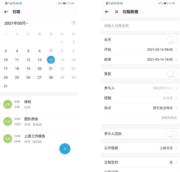 日程模块能够协助你更高效地规划个人时间并设置事项提醒。你可以借助日程功能安排日常工作事务,而且该功能还支持与他人共享日程信息。