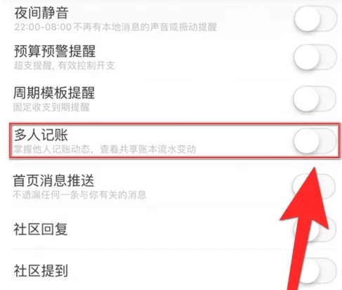找到多人记账,开启右侧开关即可。
