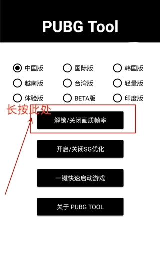 注意:若要使用GFX Tool、画质助手等工具,请长按解锁或关闭画质帧率,以取消解锁画质帧率选项,不然这些工具将无法生效。