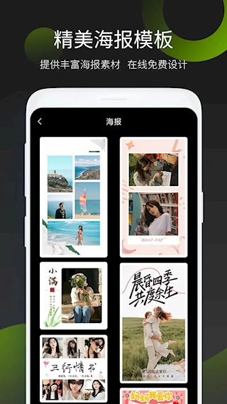 提供丰富主题的海报模板,涵盖美食、旅行、节日、时尚等多种场景,满足不同内容的风格化设计需求。