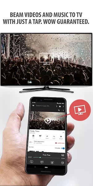 不确定你的电视是否兼容?看看你的电视/接受器的盒子或者用户手册上的 DLNA 标志,或者只需要免费这款应用程序即可。