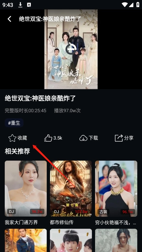 点击喜欢的短剧进入详情页,点击“收藏”。