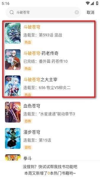例如搜索《斗破苍穹》,就像图中呈现的那样,会显示出多个结果,通常可以找到系列相关的内容。