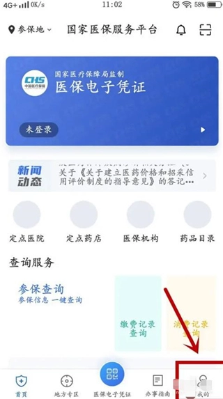 打开国家医保服务平台首页后,点击页面右下角的【我的】按钮。