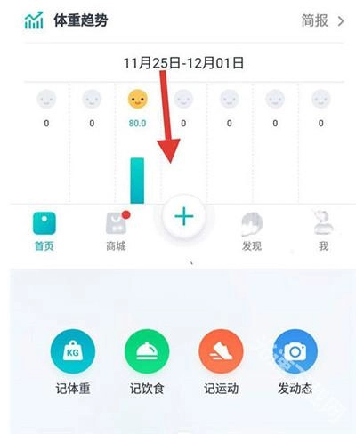 打开好轻后,在页面底部找到+号按钮,点击该按钮会弹出一个选择框,接着选择第二个选项“记饮食”。