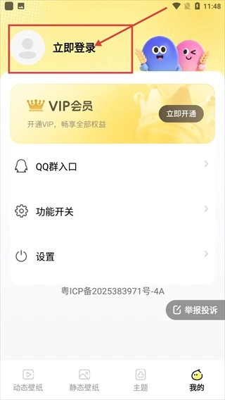 在个人中心页面,点击【立即登录】按钮,就能进入登录界面。