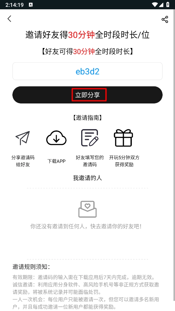 最后还能邀请好友一起畅玩,这样就能获得30分钟的全时段时长。