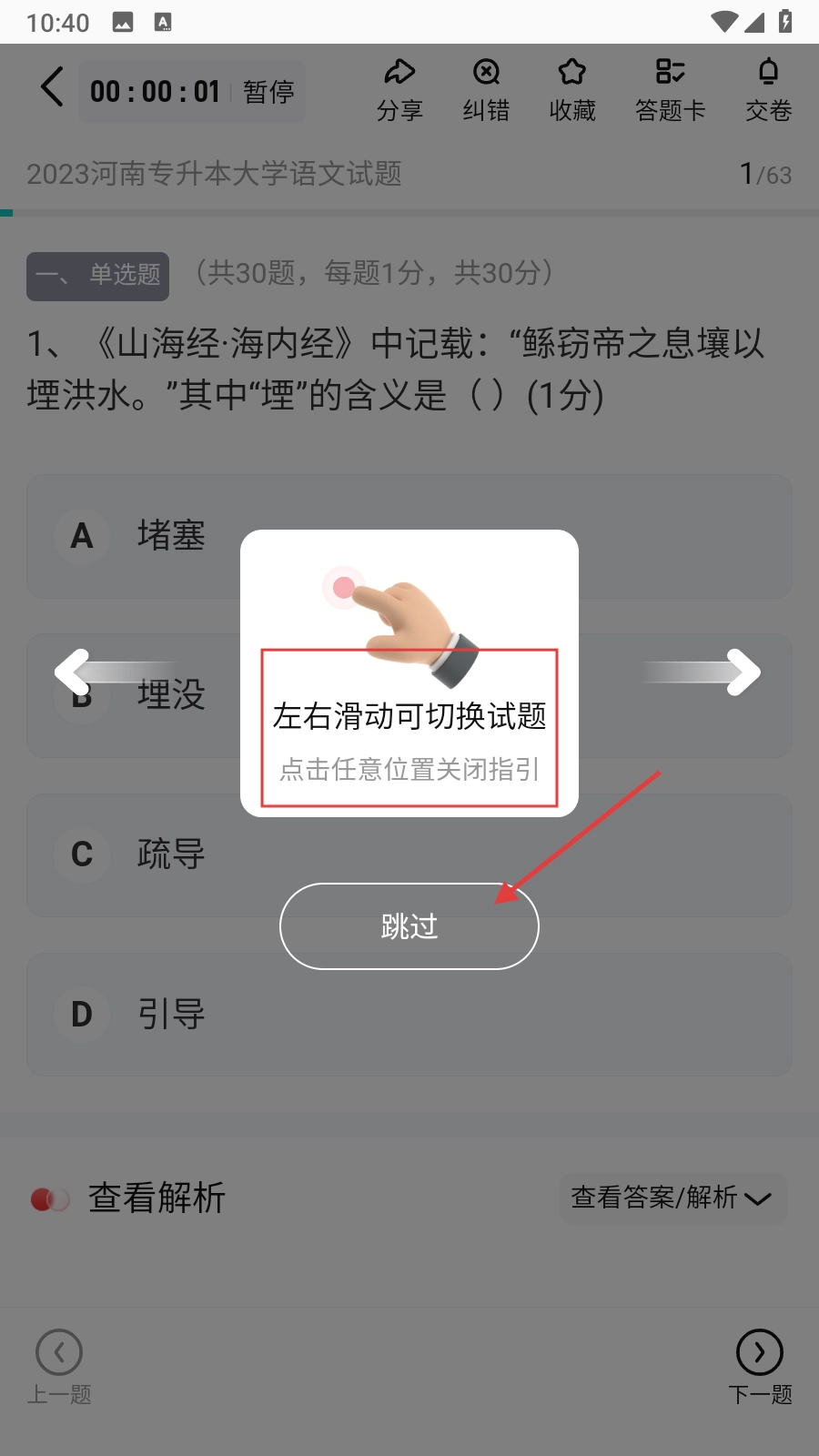 选答题模式(例如考试倒计时模式),点击【开始答题】按钮。