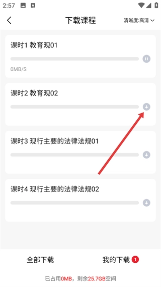 在课程页面,挑选你需要的课时,比如【课时2-教育观02】,点击右侧的按钮就可以了。