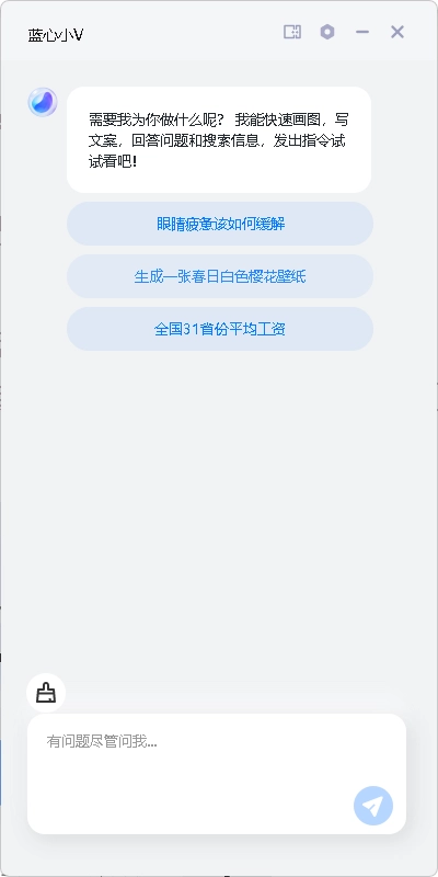蓝心小V功能十分强大,它融合了智能问答、全面搜索、创图协作等多种功能。