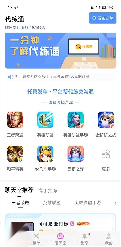 代练通订单统一管理状态实时显示,省时省力。