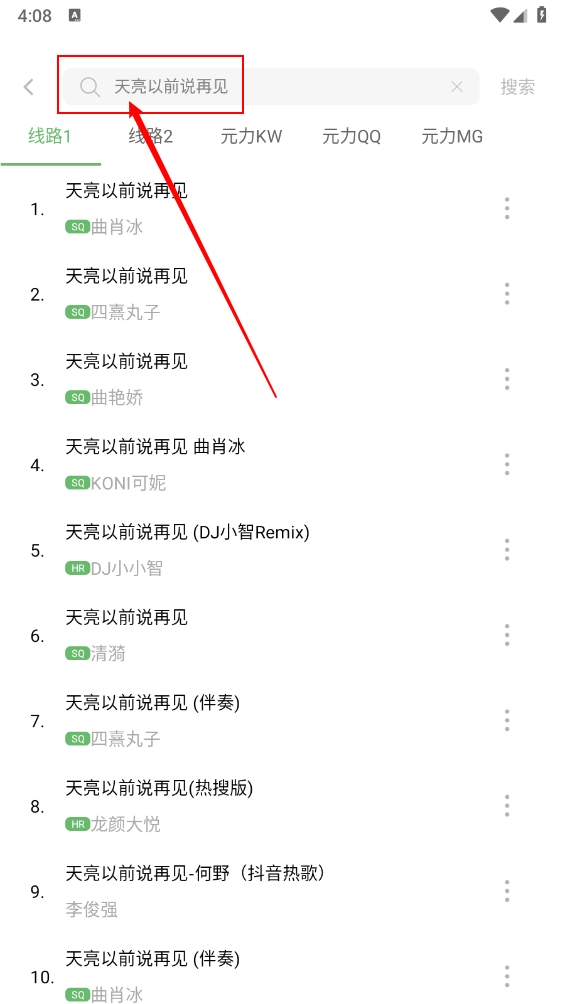 如图所示,有多个搜素结果,选择喜欢的歌曲进入。