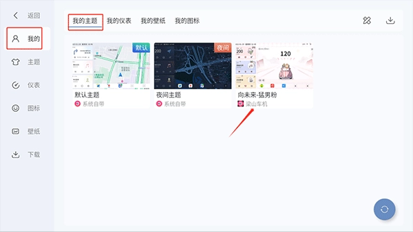 主题完成后回到我的界面,然后在我的主题界面里点击刚才的那个主题