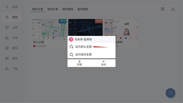 默认模式下的主题选择功能已优化,在主题界面的左下角会有标注,以此说明该主题适配哪些模式。