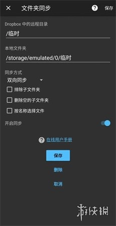 在Dropsync里配置同步文件夹时,要先在Dropbox上创建远程同步目录,并且在安卓手机的本地文件夹中建立与之对应的同步目录;接着挑选同步模式,该应用一般提供7种同步模式,通常推荐选用双向同步(也就是一端进行增删改操作后,会马上同步到另一端);之后下面的三个选项一般无需勾选,开启同步功能后点击保存即可。