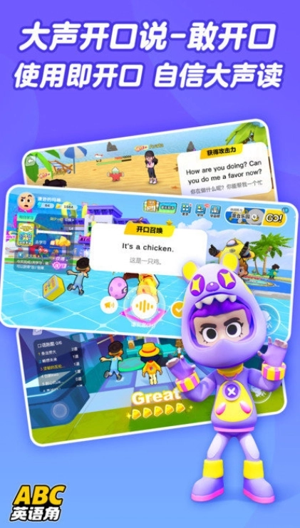 ABC英语角是一款超实用的英语学习助手,拥有海量丰富的英语学习课程。在这个平台上,孩子能轻松学英语,帮助宝宝从小就爱上英语,是一款非常好用的英语启蒙工具。它能有效激发孩子的学习兴趣,提供多种学习方式助力学习,还有卡通精美的人物设计和动态动画内容,助力提升英语成绩。此外,平台还配备智能AI口语测评功能,让孩子可以随时了解自己的口语水平。更多丰富课程等你来探索,有需要的小伙伴快来体验吧!