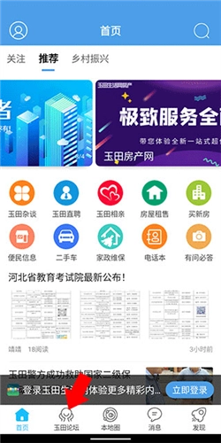 然后打开玉田生活网,在首页里点击下方导航栏中的玉田论坛