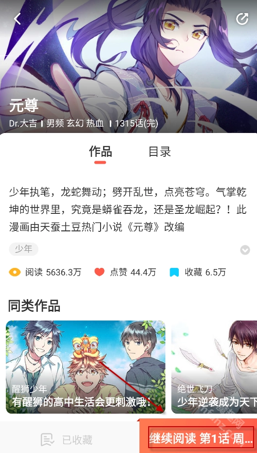 挑选你感兴趣的漫画,点进去查看详情页面,接着点击“阅读”按钮。