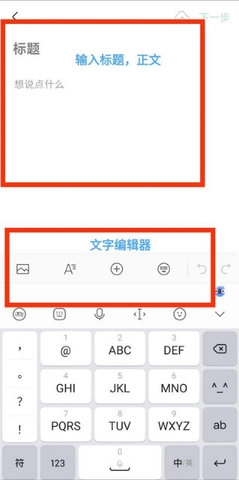 根据页面提示填写“标题”与“文章正文”,接着点击下一步按钮。