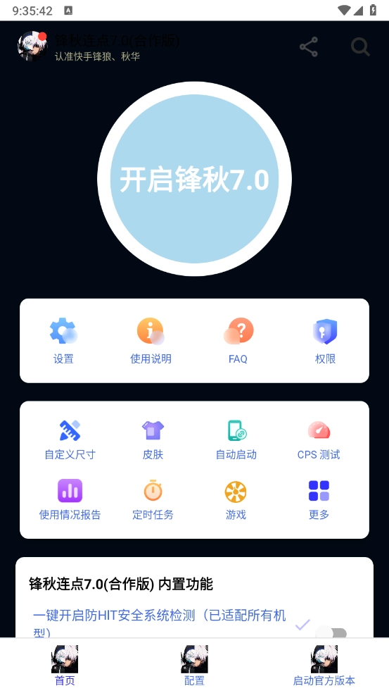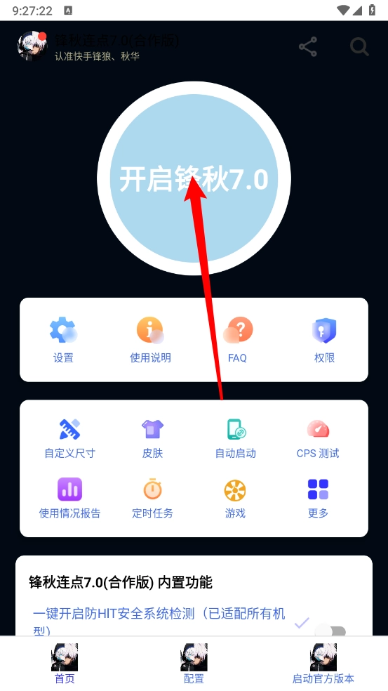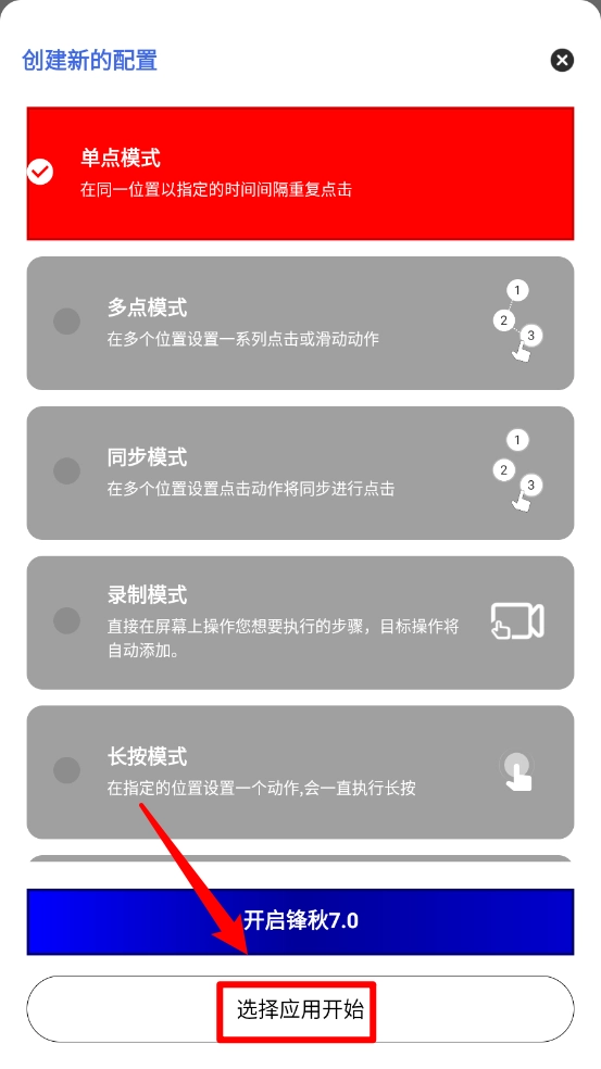 然后选择所需点击的应用,并开启"开启锋秋7.0"。