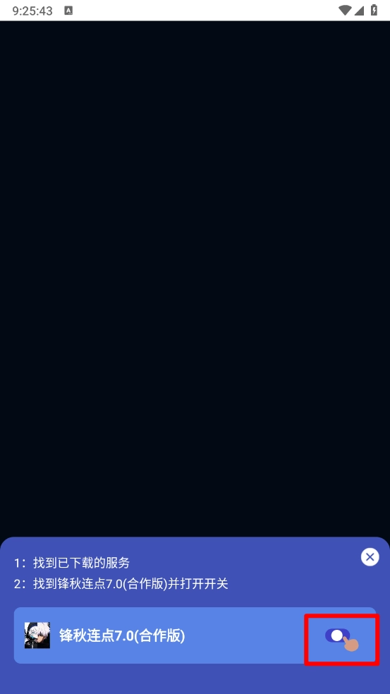 打开"锋秋连点7.0",找到并开启使用服务的开关就可以了。