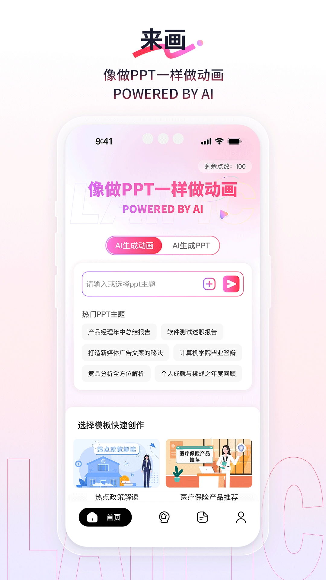 来画动画这款工具能助力用户借助AI生成动画视频,用户在软件里可以用制作PPT般的方式来创作动画内容。软件了各式各样的动画模板,可供用户自由选用;同时还支持多种不同格式的文件导入,方便用户在平台上更高效地制作动画视频与PPT内容。此外,软件配备了丰富的文档工具,能帮助用户轻松编辑文档内容,从而得到更精美、更出色的呈现效果。