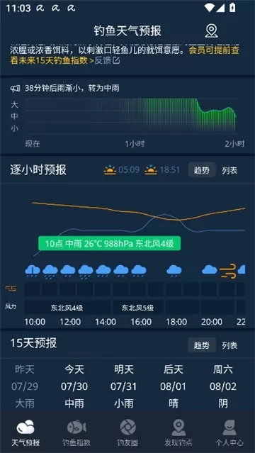 科学计算每个小时的钓鱼垂钓指数和鱼儿活跃情况,为爆护提供气象参照。