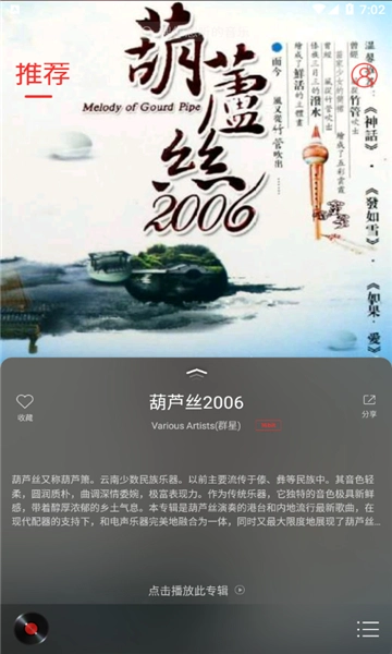 采用CD标准的16bit/44.1kHz规格FLAC格式,借助无损压缩技术进行存储和传输,其音质与原生CD的高保真录音毫无差异。