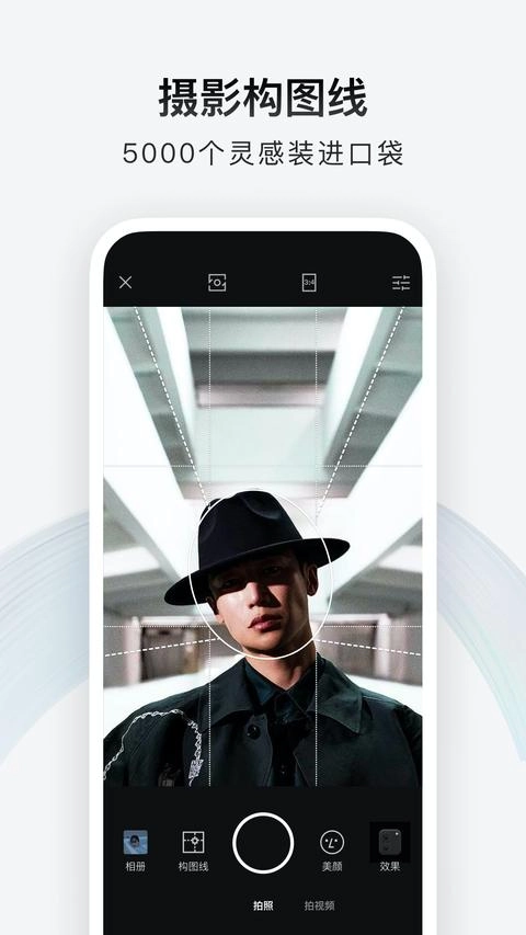构图辅助功能:借助构图线,你能轻松拍出高质量的自拍、情侣照、聚会合影以及宠物照片等。