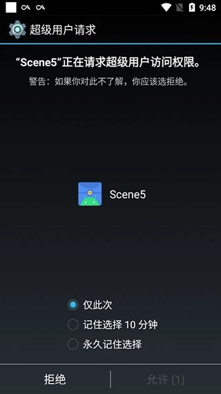 2、选择模式后,请先授予应用超级用户权限;