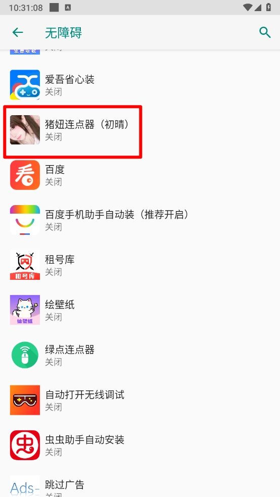 弹出无障碍服务,点击"同意"跳转至无障碍页面。