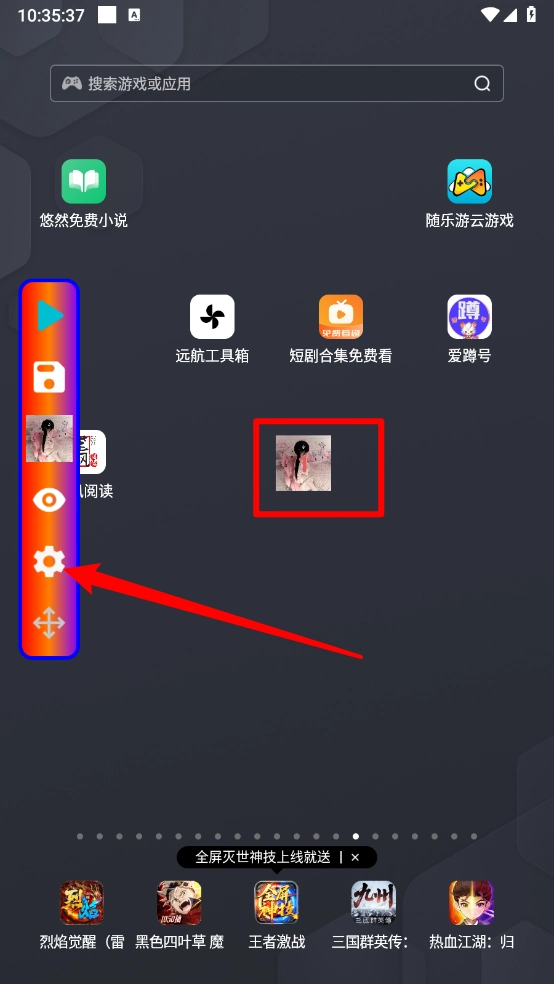 然后拖动光标到需要点击的位置,接着在左侧栏目中点击“设置”图标。