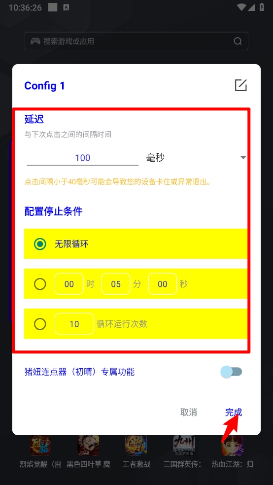 根据所需设置间隔时间和循环的次数,点击"完成"。